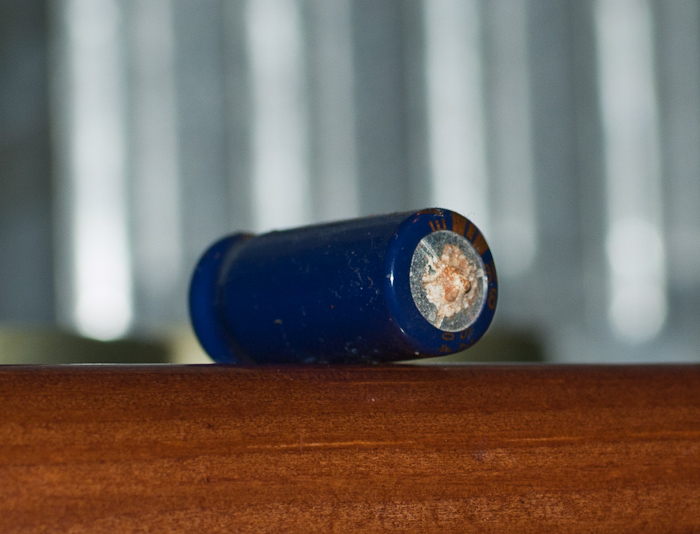 Удалить его можно заостренной деревянной палочкой. Можно использовать палочки-зубочистки или палочки для чистки ушей (если снять с них ватные тампоны). Дерево там твердое и прекрасно подходит для наших целей. В крайнем случае, можно использовать спичку, если предварительно обжечь ее конец на жале паяльника, чтобы этот кончик стал тверже. Итак, надо опять нанести каплю флюса на места пайки, вставить кончик деревянной палочки или спички в переходное отверстие, слегка надавить на него и прогреть с противоположной стороны паяльником. Когда припой расплавится, заостренный кончик палочки покажется с противоположной стороны. Перед припайкой нового конденсатора необходимо, естественно, предварительно облудить его выводы. Проверьте и полевые транзисторы!